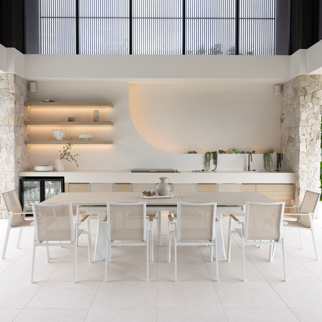 Our philosophy is rooted in thoughtful design and enduring quality. Each piece in our outdoor furniture collection is crafted from premium materials that are as beautiful as they are durable, from rust-resistant aluminium and sintered stone to quick-dry foam and weather-resistant Olefin fabrics. These materials are chosen to thrive in the Australian climate while maintaining their comfort and style year after year.