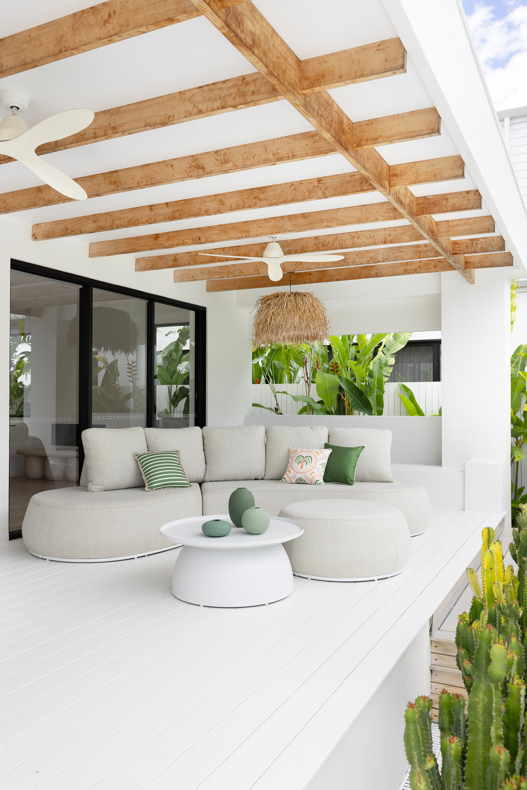 The best outdoor spaces invite you to stay a while. Add plush, weather-resistant cushions, soft outdoor throws, and even an outdoor rug to create warmth underfoot. Natural textures like teak, wicker, and linen-look fabrics echo the relaxed Gold Coast vibe, while ensuring long-term durability.