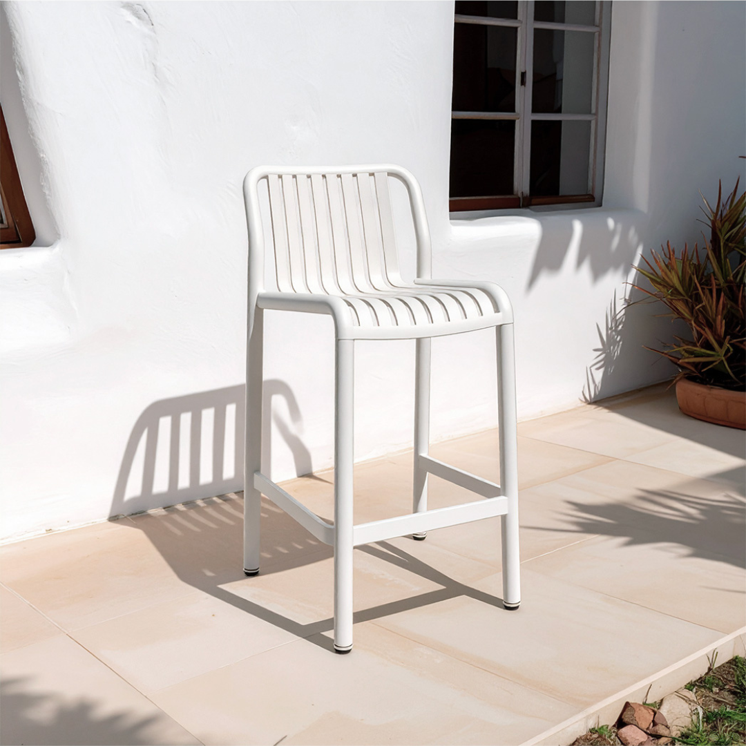 Matched here with the Voyage Bar Chair in White.